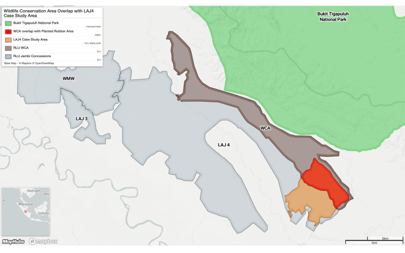Die Konzessionen des RLU-Projektes grenzen teilweise direkt an den Nationalpark. Eine sogenannte Wildlife Conservation Area (WCA) wurde eingerichtet, doch auch innerhalb dieser Puffer-Zone wurde Wald gerodet, wie Satellitenbilder nun zeigen.